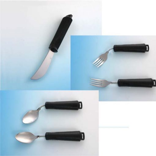 Jos puristusvoima on heikko, kevyet astiat ja kevyet ja paksuhkovartiset välineet helpottavat sekä ruuanvalmistusta että ruokailua.